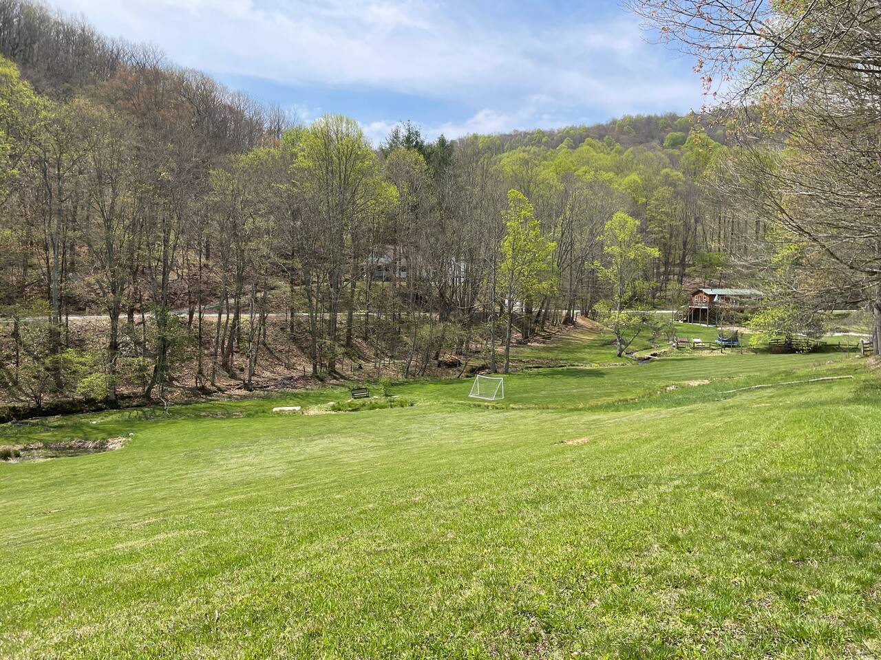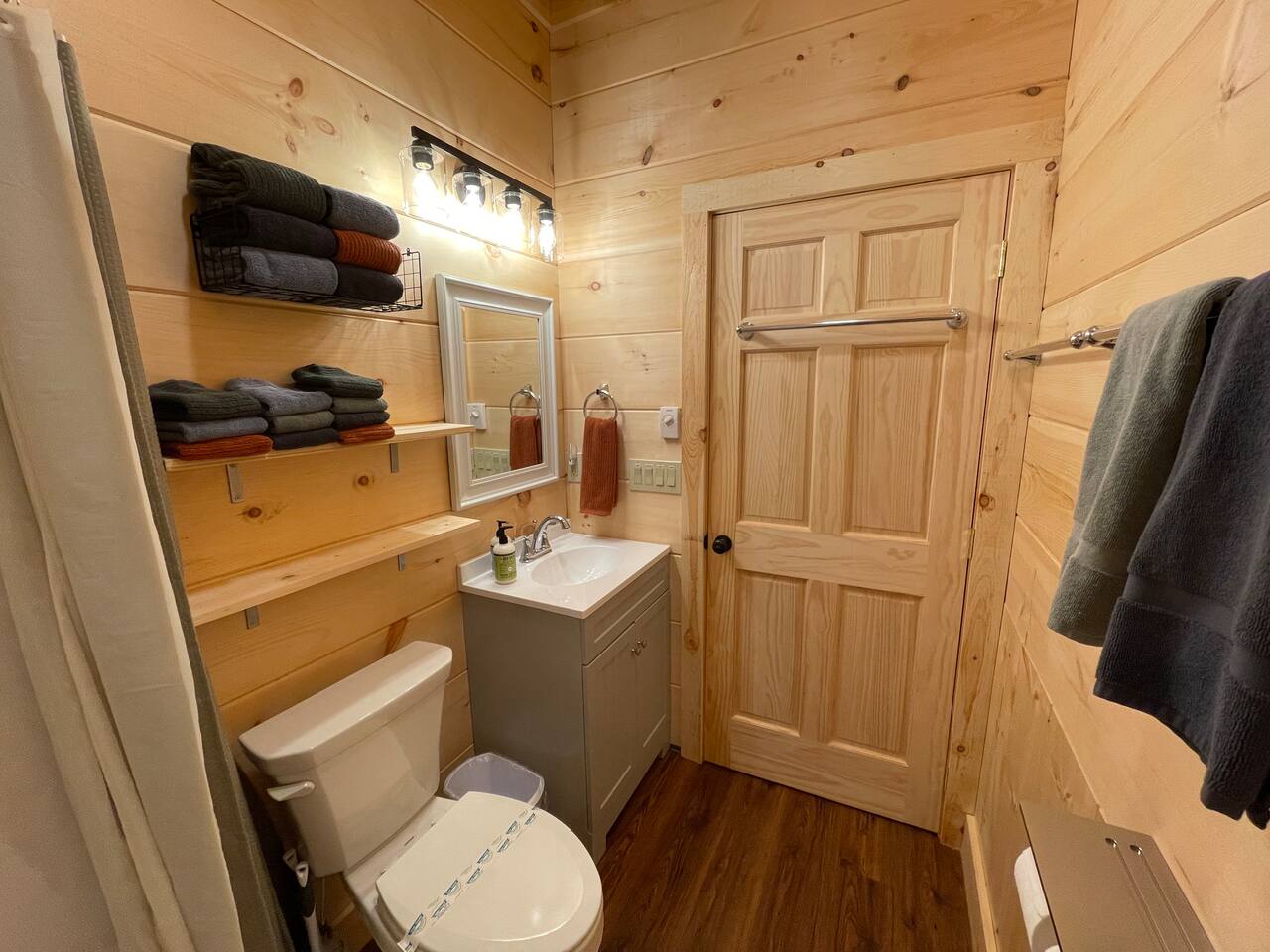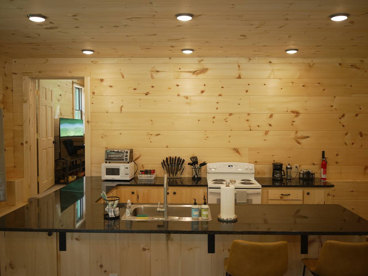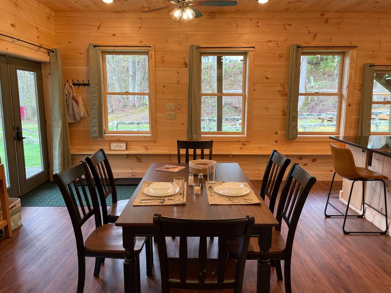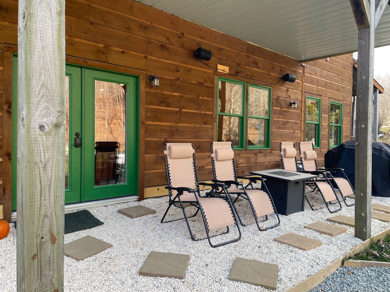 Accommodations: Kitchen & Dining: A fully equipped kitchen with everything you need, plus a dining table that comfortably seats 6 and 2 cozy bar stools at the kitchen counter – perfect for casual meals and fun gatherings. Lounge Area: A warm and inviting space with a plush couch and two comfy chairs, ideal for relaxing after a long day. Entertainment: Enjoy a movie night on the 65” Roku Smart TV, complete with a soundbar and subwoofer for a rich, immersive experience. Sleeping Arrangements: Rest easy in the luxurious comfort of 1 King Bed, 2 Twin Beds, 1 Queen Bed, and 1 Queen Sleeper Sofa. The main beds feature indulgent 12” memory foam mattresses, while the sleeper sofa comes with a 4” memory foam mattress for extra support and comfort. Outdoor Features: Escape to the beautiful outdoors, where two creeks merge into one, bordered by a private soccer field. The expansive yard is complemented by a nearby open field. Relax on the covered patio in zero-gravity chairs, gather around the propane fire pit, and enjoy your favorite tunes through premium outdoor speakers – the perfect setting to unwind.