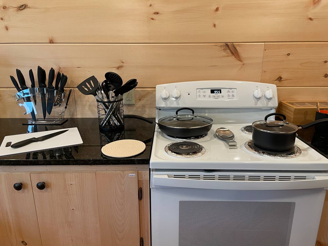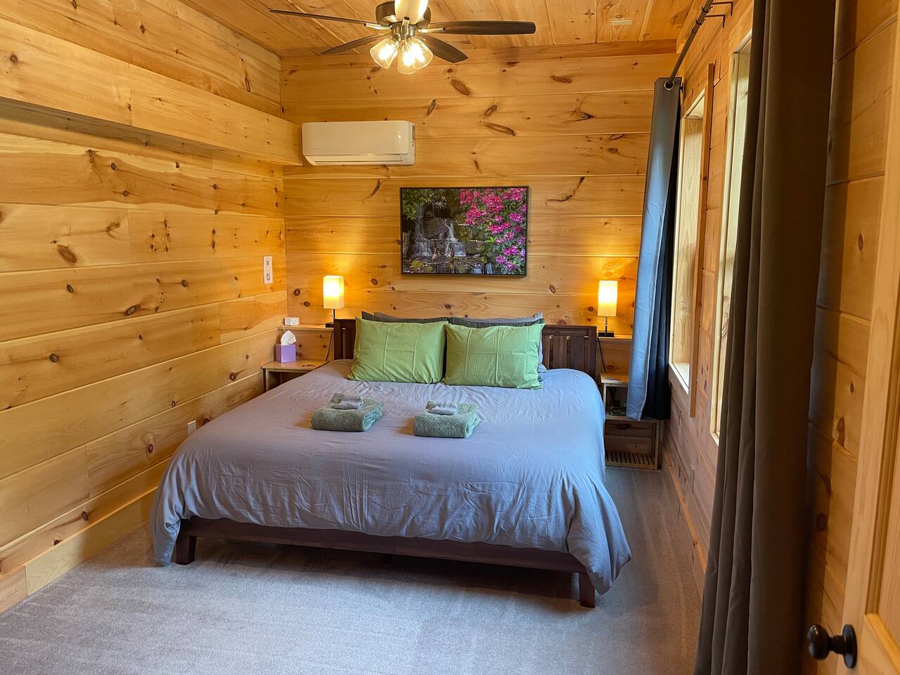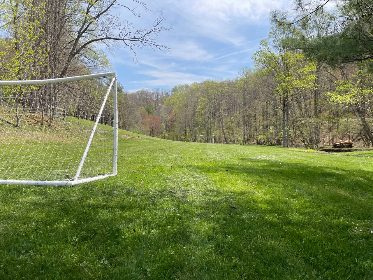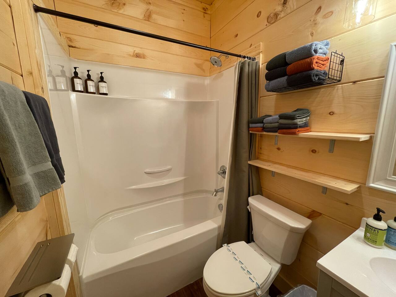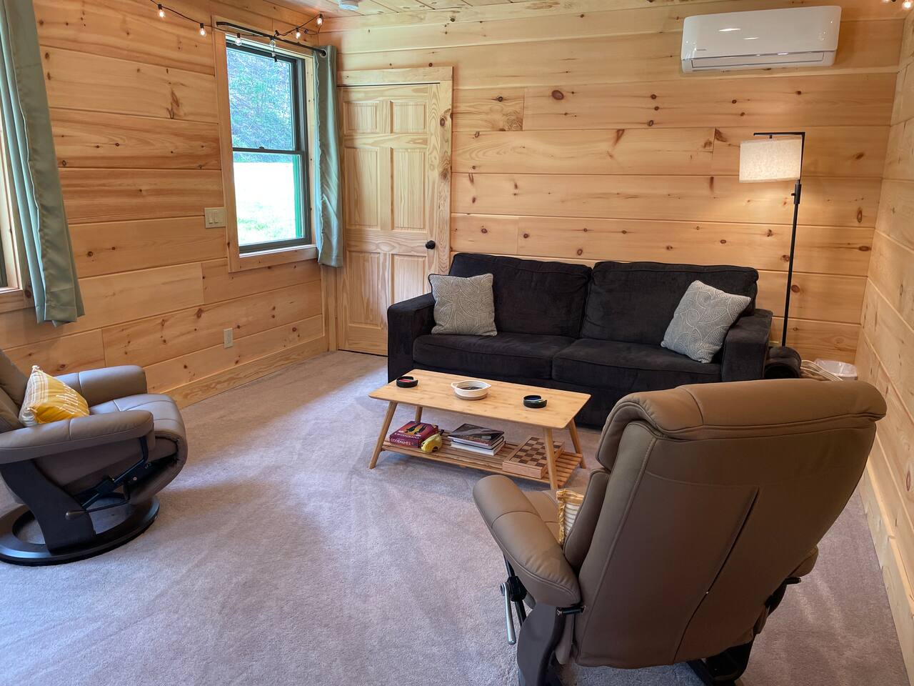 Accommodations: Kitchen & Dining: A fully equipped kitchen with everything you need, plus a dining table that comfortably seats 6 and 2 cozy bar stools at the kitchen counter – perfect for casual meals and fun gatherings. Lounge Area: A warm and inviting space with a plush couch and two comfy chairs, ideal for relaxing after a long day. Entertainment: Enjoy a movie night on the 65” Roku Smart TV, complete with a soundbar and subwoofer for a rich, immersive experience. Sleeping Arrangements: Rest easy in the luxurious comfort of 1 King Bed, 2 Twin Beds, 1 Queen Bed, and 1 Queen Sleeper Sofa. The main beds feature indulgent 12” memory foam mattresses, while the sleeper sofa comes with a 4” memory foam mattress for extra support and comfort. Outdoor Features: Escape to the beautiful outdoors, where two creeks merge into one, bordered by a private soccer field. The expansive yard is complemented by a nearby open field. Relax on the covered patio in zero-gravity chairs, gather around the propane fire pit, and enjoy your favorite tunes through premium outdoor speakers – the perfect setting to unwind.